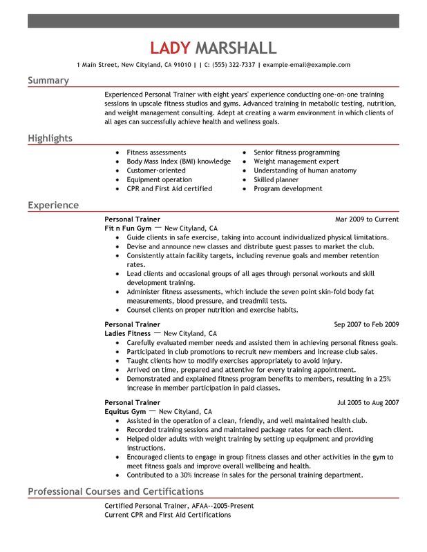 5 Примеры резюме личного тренера на 2022 год