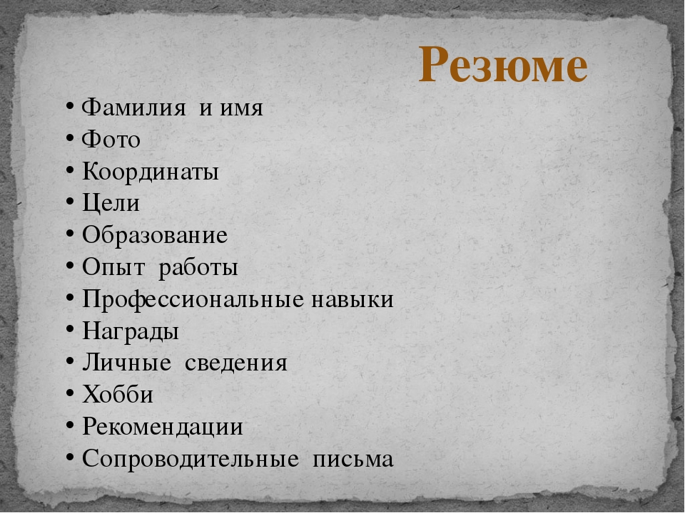 Чтобы текст получился качественным, желательно использовать формат PDF. Тогда у вас не будет съехавших фрагментов, которые могут испортить дизайн. В начале резюме напишите о цели получения работы, желаемой должности и размере заработной платы.