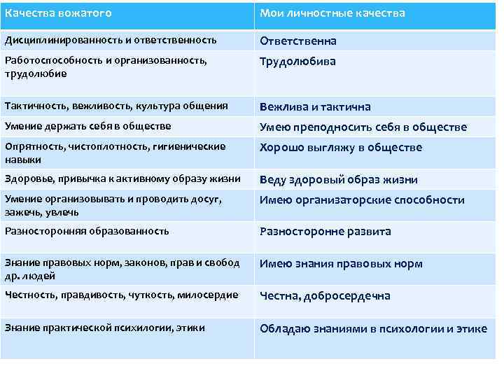 Вожатый в детском лагере должен обладать такими качествами, как: