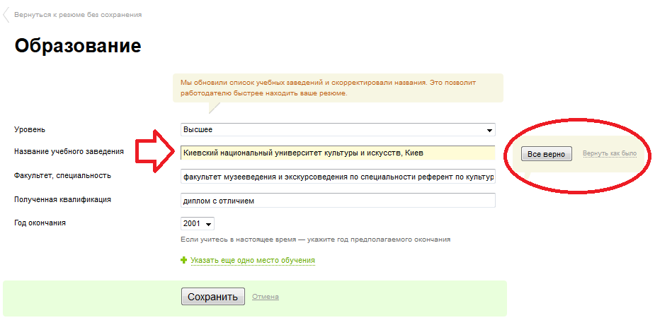 ΠΡ ΠΌΠΎΠΆΠ΅ΡΠ΅ ΡΠΎΡΡΠ°Π²ΠΈΡΡ Π½ΠΎΠ²ΠΎΠ΅ ΡΠ΅Π·ΡΠΌΠ΅ (ΡΡΠΎ ΠΌΠΎΠΆΠ½ΠΎ ΡΠ΄Π΅Π»Π°ΡΡ, ΠΏΡΠΎΠ΄ΡΠ±Π»ΠΈΡΠΎΠ²Π°Π² ΡΡΠ°ΡΠΎΠ΅ ΠΈ Π²Π½Π΅ΡΡΠΈ Π² Π½Π΅Π³ΠΎ ΠΎΠ±Π½ΠΎΠ²Π»Π΅Π½Π½ΡΡ ΠΈΠ½ΡΠΎΡΠΌΠ°ΡΠΈΡ). ΠΠΎΠ²ΠΎΠ΅ ΡΠ΅Π·ΡΠΌΠ΅ Π΄ΠΎΠ»ΠΆΠ½ΠΎ ΠΎΡΠ»ΠΈΡΠ°ΡΡΡΡ ΠΎΡ ΡΡΠ°ΡΠΎΠ³ΠΎ ΠΏΠΎ Π½Π°Π·Π²Π°Π½ΠΈΡ. Π ΡΡΠΎΠΌ ΡΠ»ΡΡΠ°Π΅ Π²Ρ ΡΠΌΠΎΠΆΠ΅ΡΠ΅ Π½Π°ΠΏΡΠ°Π²ΠΈΡΡ ΠΏΠΎΠ²ΡΠΎΡΠ½ΡΠΉ ΠΎΡΠΊΠ»ΠΈΠΊ.