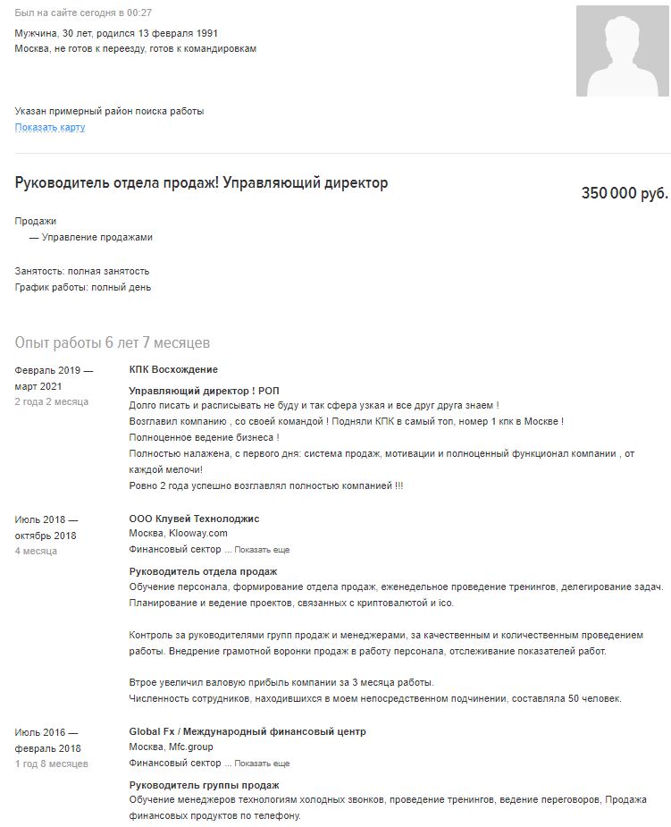 Π ΡΠΎΠΆΠ°Π»Π΅Π½ΠΈΡ, ΠΌΡ Π½Π΅ ΡΠΎΠΎΠ±ΡΠ°Π΅ΠΌ ΠΊΠΎΠ½ΡΠ°ΠΊΡΠ½ΡΡ ΡΠ΅Π»Π΅ΡΠΎΠ½ΠΎΠ² ΡΠ°Π±ΠΎΡΠΎΠ΄Π°ΡΠ΅Π»Π΅ΠΉ ΠΈ Π½Π΅ ΠΏΠ΅ΡΠ΅ΡΡΠ»Π°Π΅ΠΌ ΠΈΠΌ ΡΠ΅Π·ΡΠΌΠ΅ ΡΠΎΠΈΡΠΊΠ°ΡΠ΅Π»Π΅ΠΉ. ΠΡΠΊΠ»ΠΈΠΊΠ½ΡΡΡΡΡ Π½Π° Π²Π°ΠΊΠ°Π½ΡΠΈΡ ΠΌΠΎΠΆΠ½ΠΎ ΡΠΎΠ»ΡΠΊΠΎ ΠΏΠΎΡΠ»Π΅ ΡΠ΅Π³ΠΈΡΡΡΠ°ΡΠΈΠΈ ΠΈ ΡΠ°Π·ΠΌΠ΅ΡΠ΅Π½ΠΈΡ ΡΠ²ΠΎΠ΅Π³ΠΎ ΡΠ΅Π·ΡΠΌΠ΅ Π½Π° ΡΠ°ΠΉΡΠ΅. Π Π΅Π·ΡΠΌΠ΅ Π½Π° HeadHunter ΠΏΡΠΎΡ ΠΎΠ΄ΡΡ ΠΎΠ±ΡΠ·Π°ΡΠ΅Π»ΡΠ½ΡΡ ΠΌΠΎΠ΄Π΅ΡΠ°ΡΠΈΡ, ΠΌΡ Π²ΡΠ΅Π³Π΄Π° ΠΏΡΠ΅Π΄Π»Π°Π³Π°Π΅ΠΌ ΡΠ²ΠΎΠΈ ΡΠ΅ΠΊΠΎΠΌΠ΅Π½Π΄Π°ΡΠΈΠΈ, ΠΊΠ°ΠΊ ΡΠ»ΡΡΡΠΈΡΡ ΡΠ΅Π·ΡΠΌΠ΅, Π΅ΡΠ»ΠΈ ΠΊΠ°ΠΊΠΈΠ΅-ΡΠΎ ΠΏΡΠ½ΠΊΡΡ ΡΠ°ΡΠΊΡΡΡΡ Π½Π΅ ΠΏΠΎΠ»Π½ΠΎΡΡΡΡ. ΠΠΎΡΡΠΎΠΌΡ ΠΊΠΎΠΌΠΏΠ°Π½ΠΈΠΈ-ΡΠ°Π±ΠΎΡΠΎΠ΄Π°ΡΠ΅Π»ΠΈ Π²ΡΠ±ΠΈΡΠ°ΡΡ ΡΠΎΠΈΡΠΊΠ°ΡΠ΅Π»Π΅ΠΉ, ΡΠ°Π·ΠΌΠ΅ΡΡΠΈΠ²ΡΠΈΡ Ρ Π½Π°Ρ ΡΠ²ΠΎΠΈ ΡΠ΅Π·ΡΠΌΠ΅.