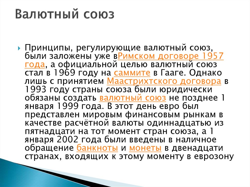 В середине 70-х годов в условиях непростой мировой экономической конъюнктуры единую Европу захлестнула волна европессимизма, который проявился в своеобразном реванше экономического протекционизма. Однако позитивный опыт, наработанный благодаря Римскому договору, подсказал самое простое и очевидное решение проблемы – больше интеграции. С созданием валютного союза экономическая интеграция Европы завершилась. Базис создан. Значит ли, что пришло время заняться надстройкой?