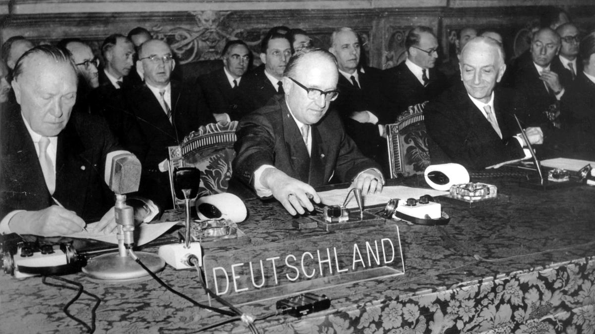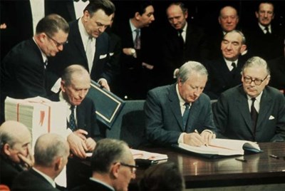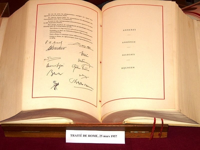 Римский договор, или Договор об учреждении Европейского экономического сообщества, был подписан 25 марта 1957 г. и вступил в силу 1 января 1958 г. Он учредил Европейское экономическое сообщество (ЕЭС), объединяющее Бельгию, Германию, Францию, Италию. , Люксембург и Нидерланды работать вместе для интеграции и экономического роста посредством торговли, создания общего рынка, основанного на свободном перемещении товаров, людей, услуг и капитала.