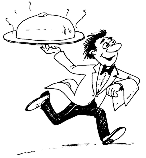 Мультфильм рисунок, официант, еда, иллюстратор, мультфильм png