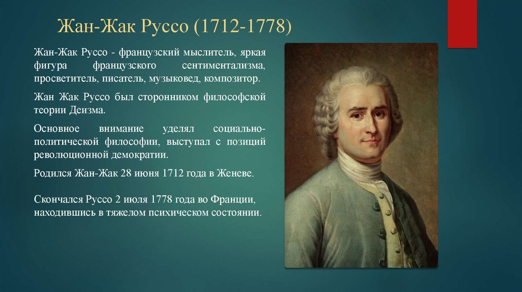 Философ Жан Жак Руссо биография философия основные идеи политические взгляды общественный договор