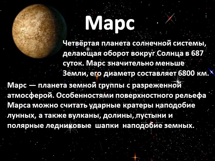 км.). Соответственно, и солнечной энергии этой планете достается на четверть меньше, чем Земле.
