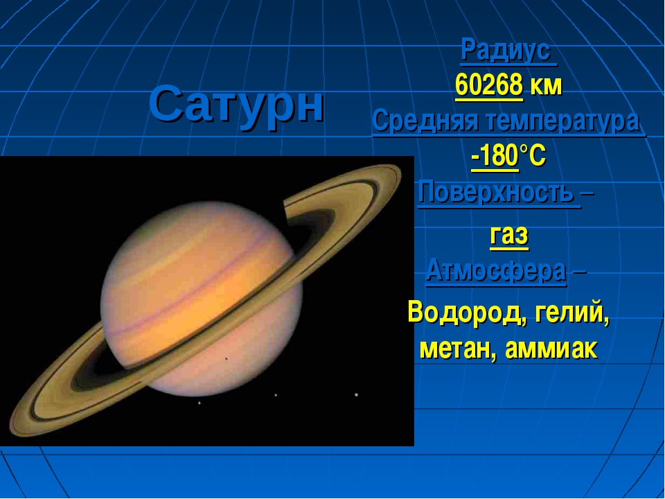 | Атмосфера | Водород (80. 0%), гелий (18,5%), метан (1,5%) |