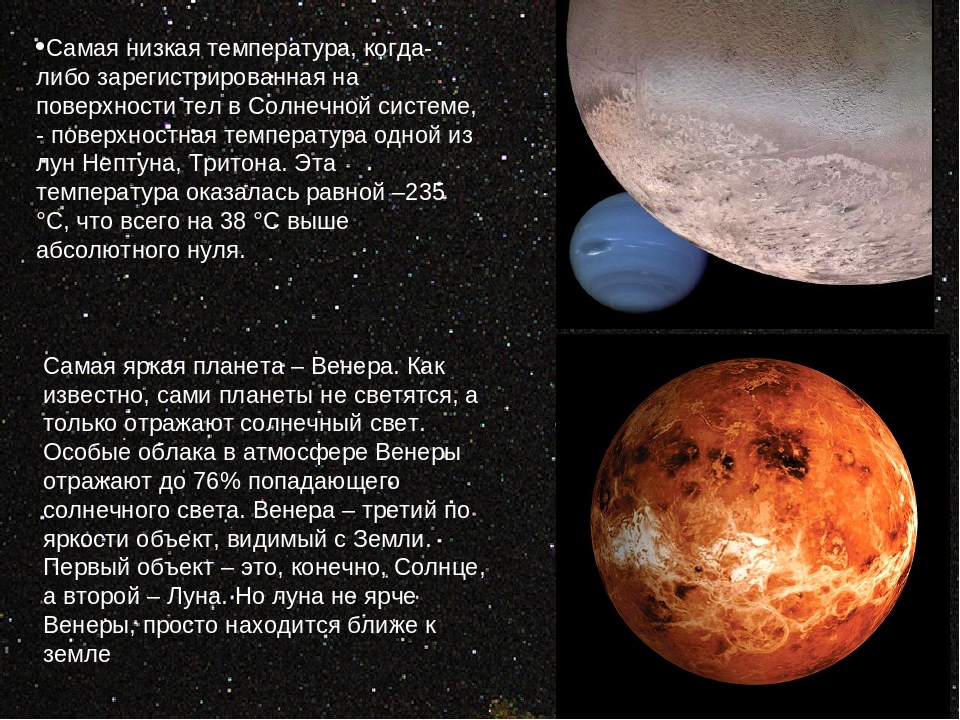 Самая низкая температура, когда-либо зарегистрированная на поверхности тел в Солнечной системе, – поверхностная температура одной из лун Нептуна, Тритона.