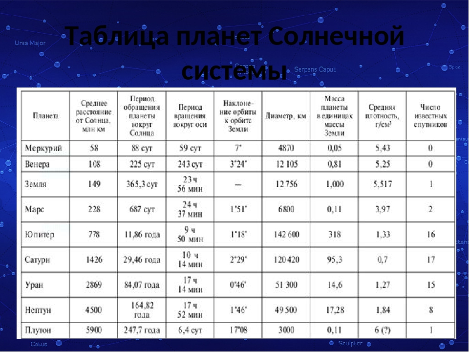 Среднее расстояние от Солнца: Среднее расстояние от центра планеты до центра Солнца.