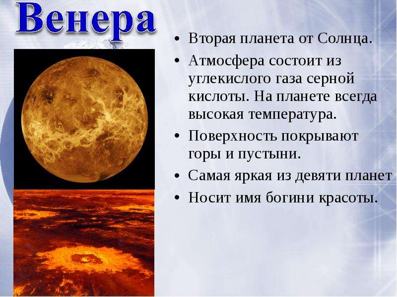 - Венера (даже если это не самая близкая планета от солнца)