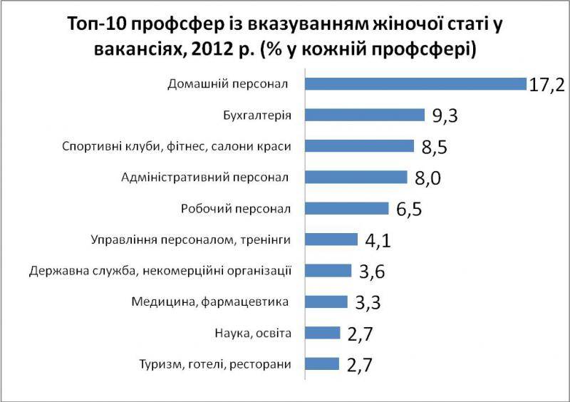 В современном мире женщины и мужчины почти одинаково представлены во многих профессиях. Тем не менее, есть определенные области, в которых доминируют женщины, такие как образование, услуги по уходу за детьми, службы занятости, уход за больными, социальные услуги и фармацевтика. В этих профессиях работают в основном женщины. Эти цифры достигают 94% в службах по уходу за детьми и 92% в службах по уходу за детьми. С другой стороны, гендерный разрыв в оплате труда по-прежнему сохраняется: женщины получают на 20% меньше, чем их коллеги-мужчины по всем направлениям.
