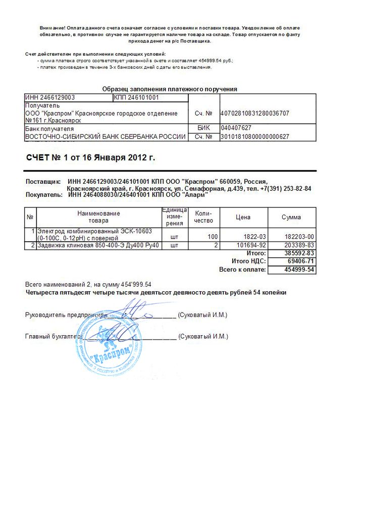 Таким образом, счет представляет своего рода соглашение (особенно в случае единичной сделки – без заключения договора), в котором поставщик предлагает свои условия сделки, а покупатель соглашается на них. Поэтому, несмотря на то что порядок выставления счета никак не регламентирован, этот документ все-таки важен и должен быть заполнен безошибочно.