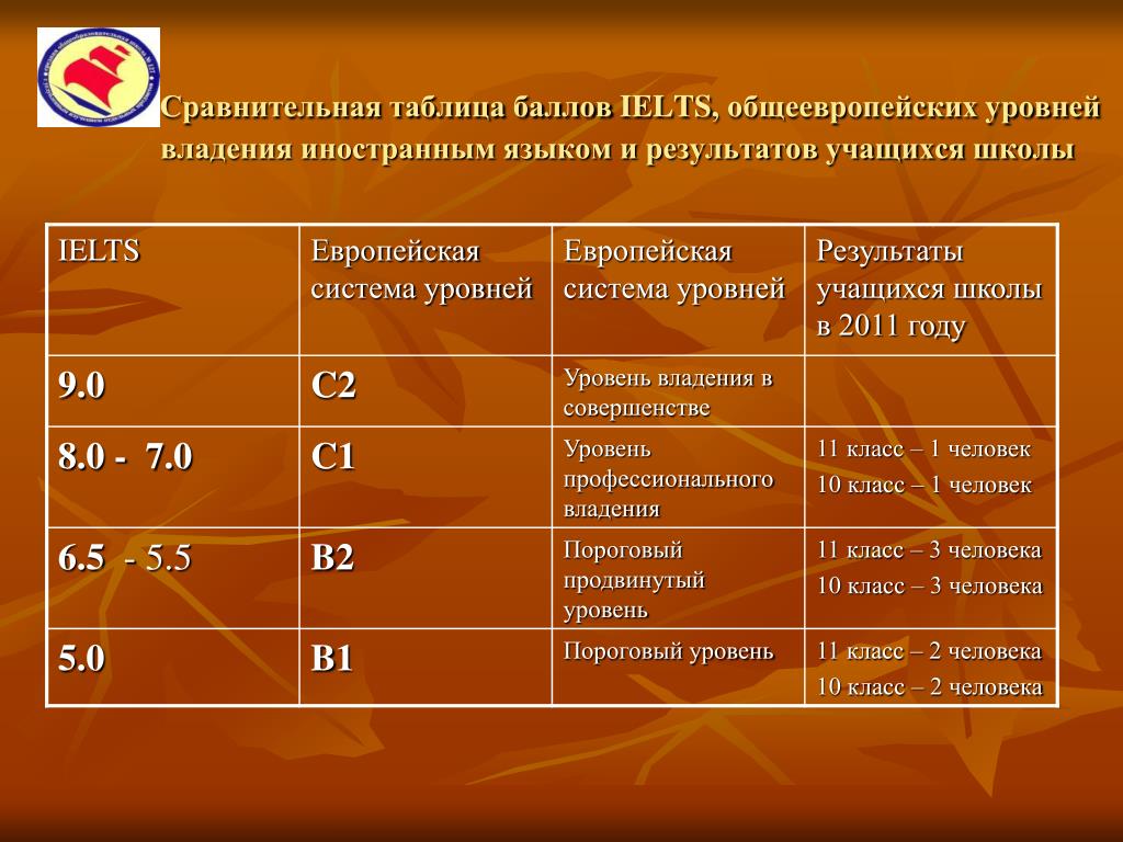 Профессионал, отлично понимает, воспроизводит как разговорную, так и деловую речь на английском языке без ошибок. Имеет богатый словарный запас. В письме также не допускает неточностей. Присваивается высший балл – 9;