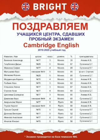 в Кембридже, в специальном подразделении Кембриджского университета University of Cambridge ESOL Examinations), дает дополнительный стимул на весь учебный год.
