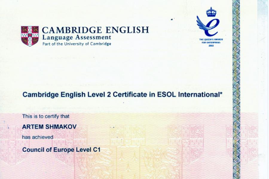 высокой ступени, и полученный им кембриджский сертификат в дальнейшем будет очень весомым дополнением