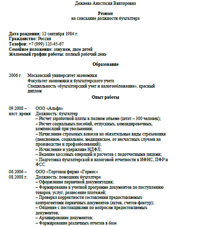- Должность в вашем резюме должна соответствовать заявлению на эту должность.