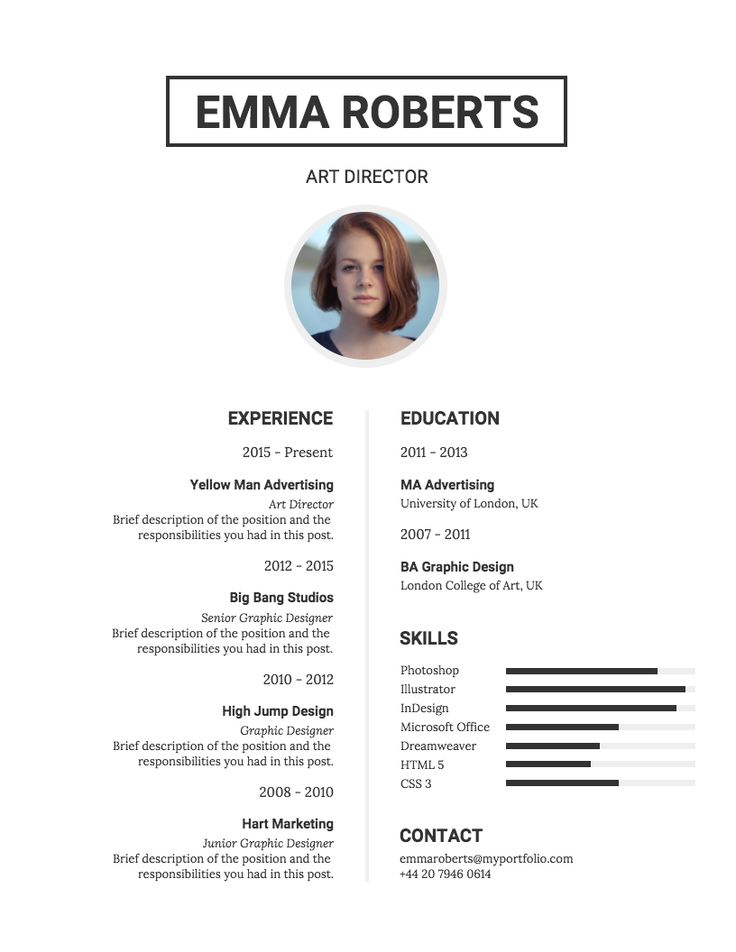 Этот шаблон CV/резюме идеально подходит для студентов или молодых специалистов с относительно небольшим опытом работы.