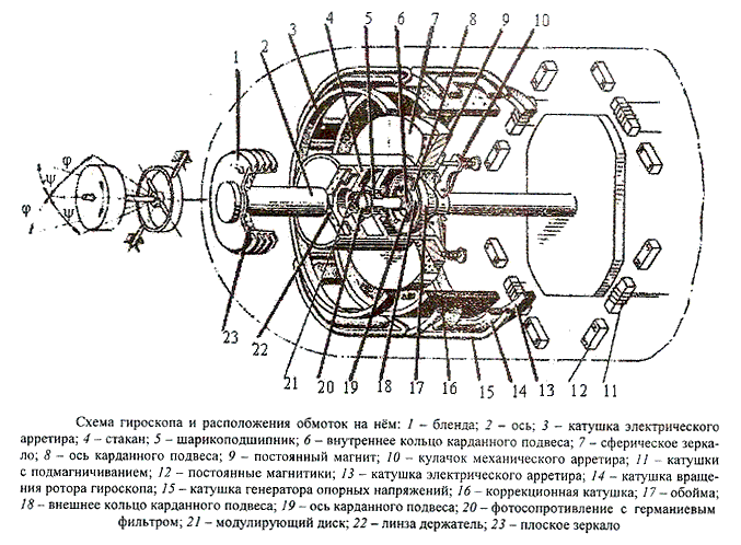 ГИРОСКОП с ВНУТРЕННИМ КАРДАНОВЫМ ПОДВЕСОМ [c.252]В целях уменьшения влияния моментов трения, возникаюш их при движении гироскопа в кардановом подвесе, применяют внутренний карданов подвес. Схема гироскопа с внутренним кардановым подвесом представлена на рис. Х.1, о. [c.252]