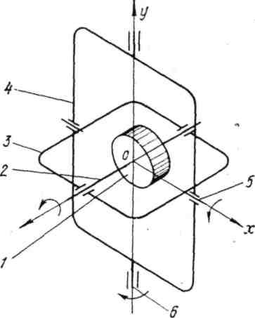 | Рис. Х.1, Схема гироскопа с внутренним кардановым подвесом |