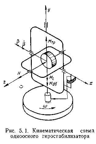 Гироскоп направления установлен в кардановом подвесе. Система координат х у г связана с внешней рамкой (ось вращения ее вертикальна), система хуг скреплена с внутренней