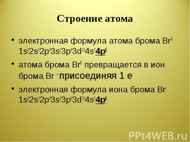 Электронная конфигурация основного состояния брома – нейтральный атом брома