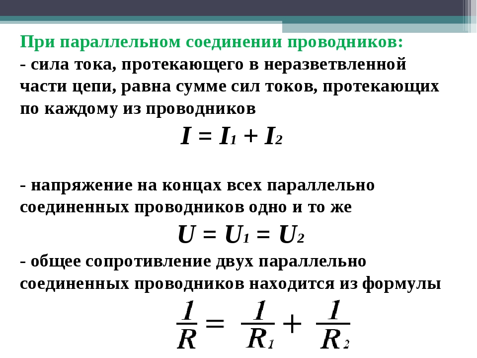 Сила электрического тока в проводнике прямо пропорциональна напряжению на концах проводника и обратно пропорциональна сопротивлению проводника.