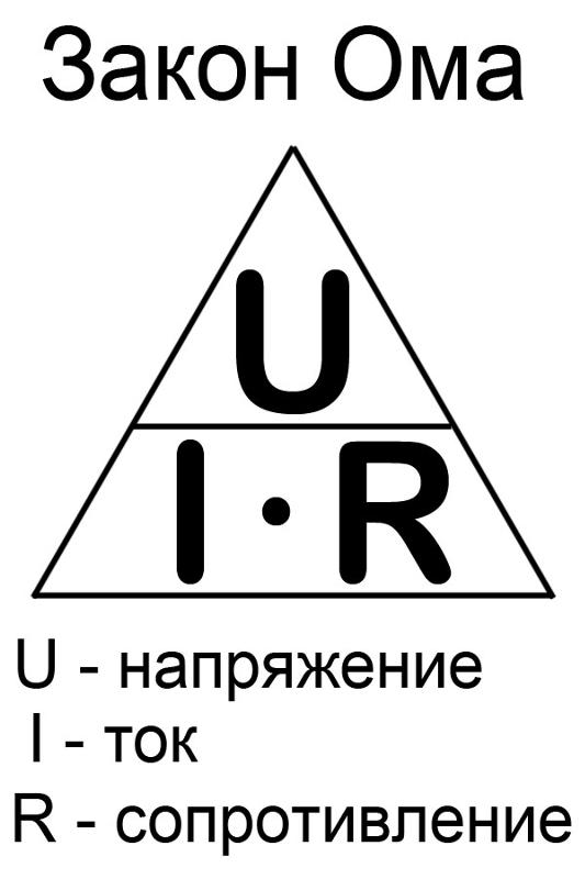 Для быстрого запоминания и использования закона Ома можно применить диаграмму, изображённую на рисунке ниже.