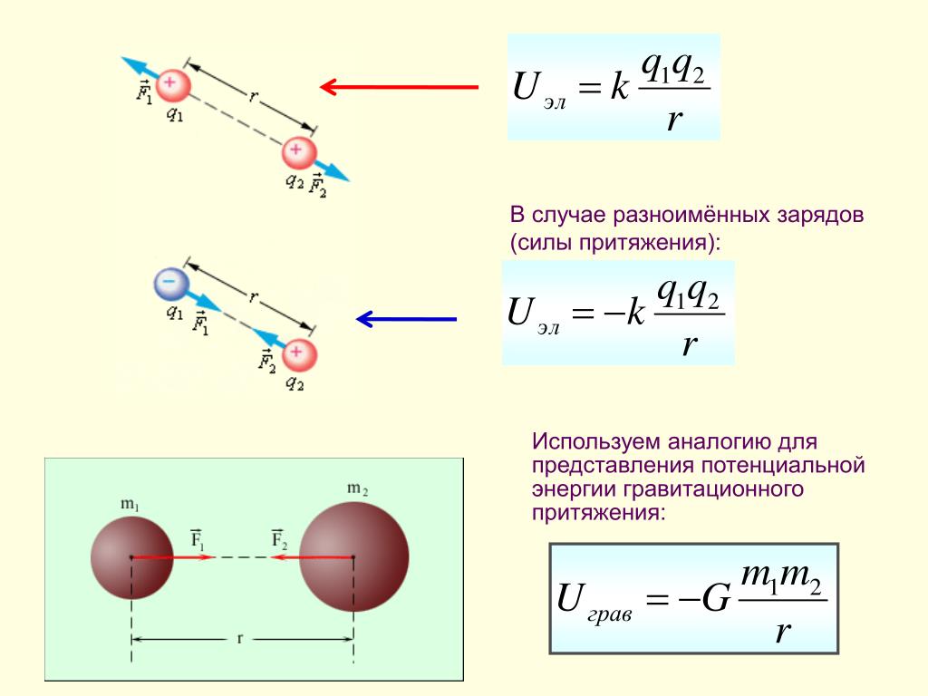 Американские горки теряют потенциальную энергию при спуске. Мы пренебрегаем трением, так что оставшаяся сила, действующая на гусеницу, является нормальной силой, которая перпендикулярна направлению движения и не совершает работы. В этом случае чистая работа на американских горках выполняется только за счет силы тяжести. потеря гравитационной потенциальной энергии при движении вниз на расстояние ч равняется приросту кинетической энергии. Это можно записать в виде уравнения как -ΔPEg = ΔKE . 2}.[/ латекс] Уравнение изменения потенциальной энергии утверждает, что 92}.[/latex]