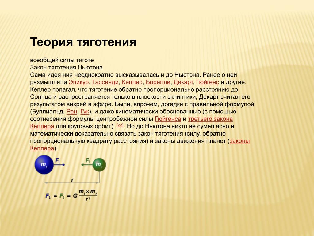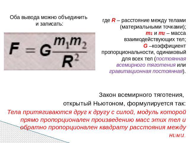 Отсюда вытекает формулировка закона всемирного тяготения.
