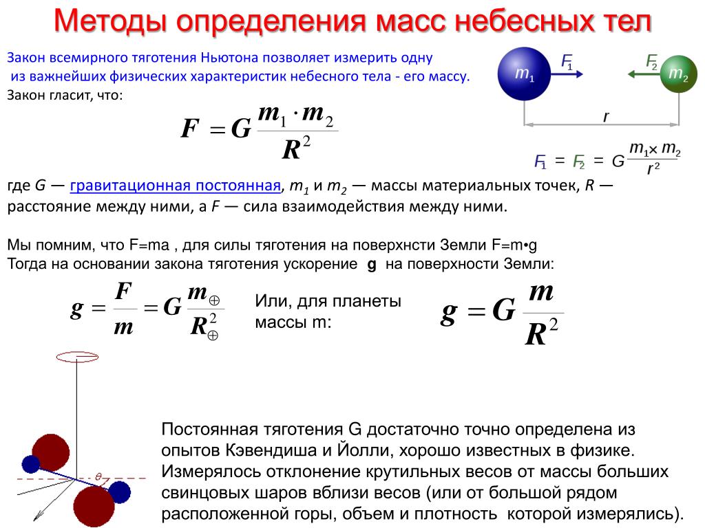 Для количественного определения G нужно независимо определить все величины, входящие в закон всемирного тяготения: обе массы, силу и расстояние между телами.