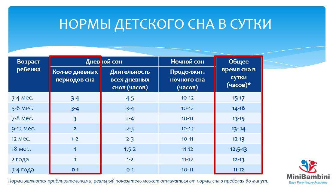 Что произойдет, если ребенок не “выспит” необходимую для своего возраста норму? У него может нарушиться поступление в кровь специфических гормонов, имеющих большое значение для роста и развития. Кроме того, при недосыпании страдает “быстрый сон” — фаза сна, от которой зависит способность к обучению и его успешность.