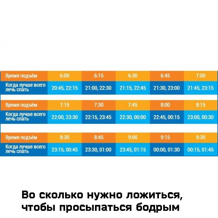 Если говорить о том, в какое время нужно засыпать, то скорее нужно придерживаться индивидуального биоритма. «Одинаковое время укладывания для всех — вредный миф, ведь утром всем нужно вставать в разное время, — говорит Пчелина. — Куда правильнее будет найти подходящее для вас время и придерживаться его регулярно». Иными словами, необходимо выработать собственный режим, отмечает врач. «В первую очередь он будет зависеть и от того, сколько часов вам нужно, чтобы выспаться до подъема на работу или по делам, а также от степени вашей загруженности», — считает невролог.