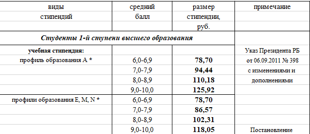 Указанные размеры стипендий увеличиваются в 1,5 раза:[∗] подпункт 2.2 Указа Президента Республики Беларусь от 06.09.2011 № 398 “О социальной поддержке обучающихся”