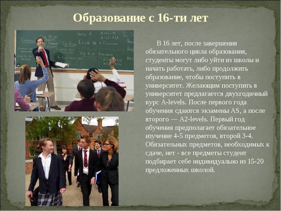 Высшее образование в США не является обязательным. Государство обязывает каждого жителя страны окончить школу, а поступать или не поступать в вуз, каждый решает сам для себя. Однако в связи с тем, что получить высшее образование считается престижным, многие американцы стараются это сделать.