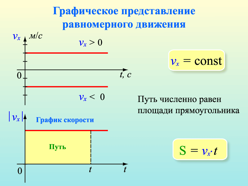 Графиком, который отображает зависимость пути от времени при равномерном прямолинейном движении, является прямая (рис.1). С увеличением величины скорости увеличивается угол наклона прямой относительно оси времени.