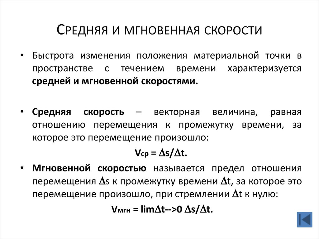 Средняя скорость и мгновенная скорость