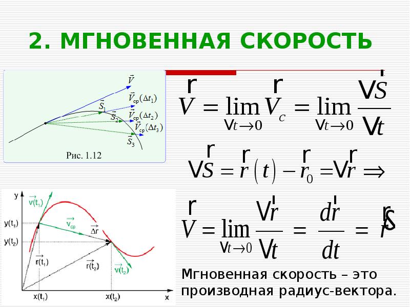 Мгновенная скорость точки. Формулы