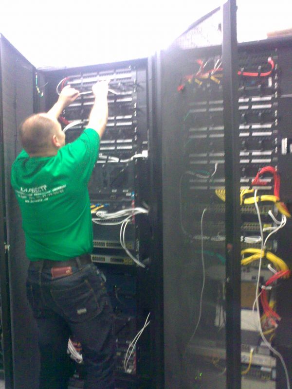 - подключение рабочих мест к локальной сети офиса, розеток, патч-панелей и сетевого оборудования,