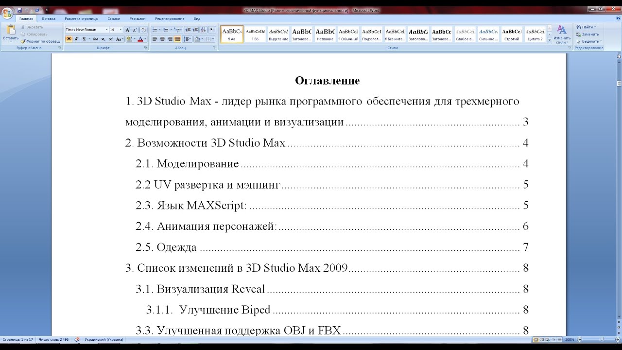 Как сделать оглавление (содержание) в Microsoft Word