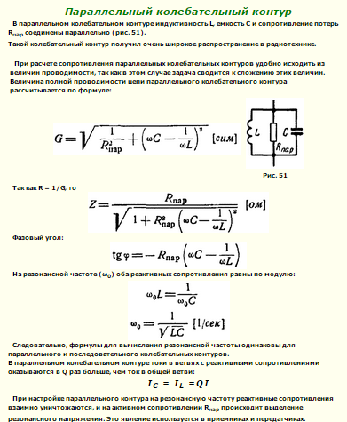 Ну и в заключении хочу добавить, что параллельный колебательный контур применяется в радиоприемном оборудовании, где надо выделить частоту какой-либо станции.