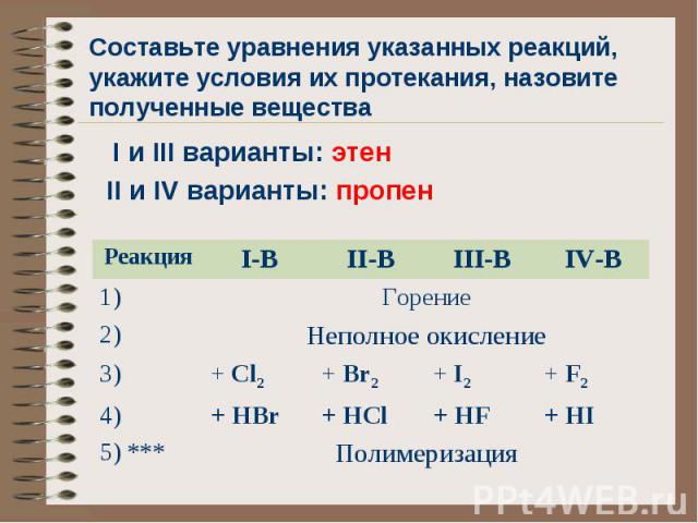 - Уравнения реакций