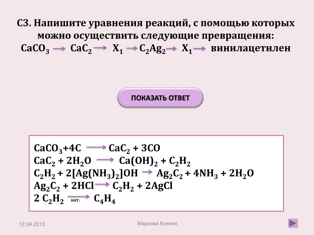 а) СаСО3 → CaO → СаС2 → С2H2 → C6H6;