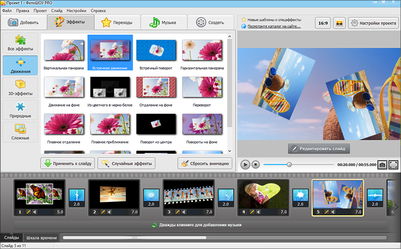 Мощная программа для создания слайд-шоу из фотографий и музыки. В редакторе пользователей ждут 250+ эффектов и переходов, музыкальная коллекция, инструменты для тонкой настройки каждого слайда.