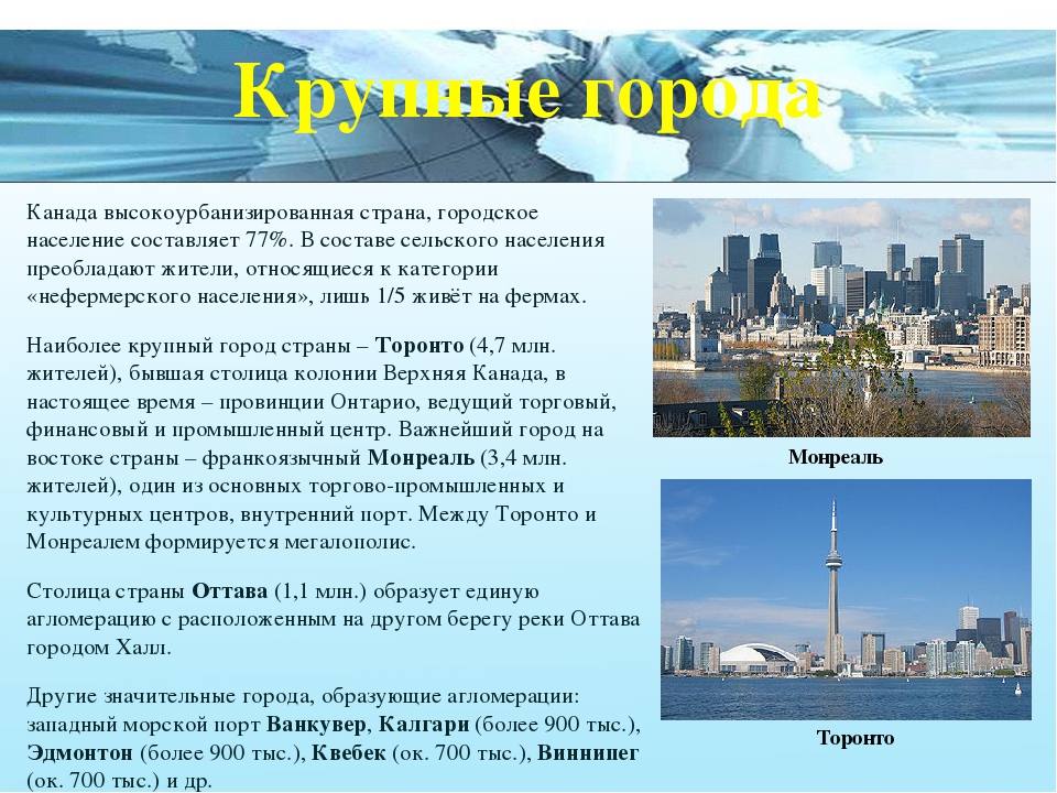Большие города Канады немногочисленны.