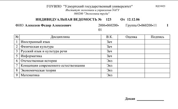 При выборе любой группы в иерархическом меню программы открывается таблица со списком студентов выбранной группы. Макет таблицы, по которому строится список студентов, формируется на основе файла стиля, который задается для каждого факультета. Если файл стиля не задан, то отображается форма по умолчанию как на рисунке 1.