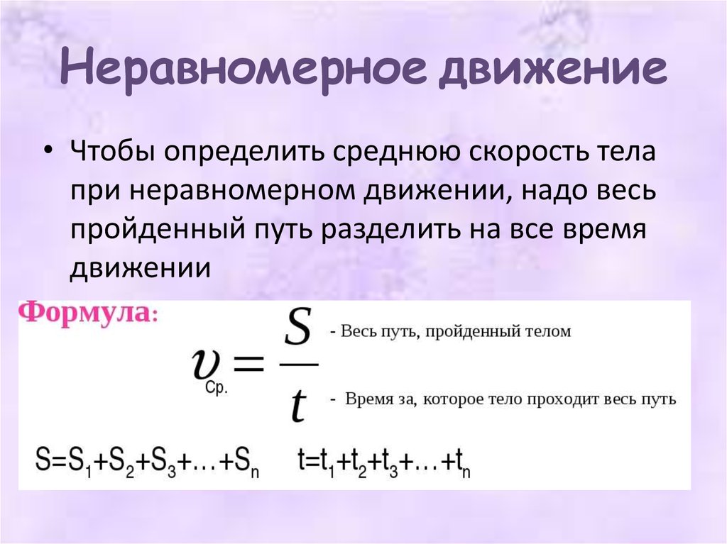 При неравномерном движении тело может за равные промежутки времени проходить как равные, так и разные пути.