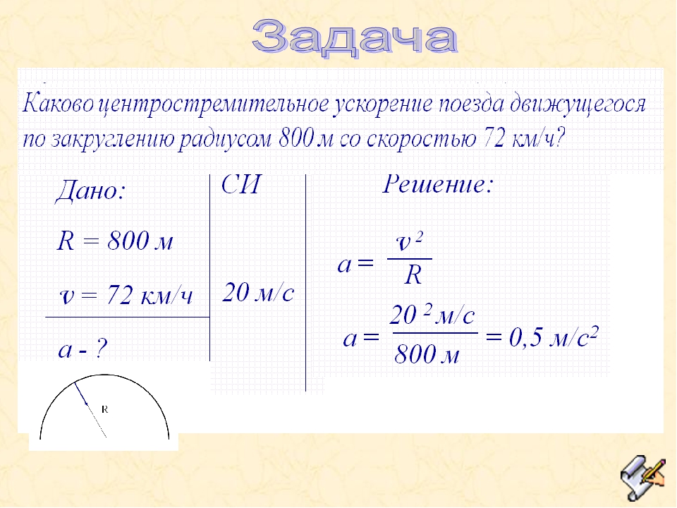 ускорение является вектором, то есть учитывает не только изменение величины скорости (модуля векторной величины), но и изменение её направления. В частности, ускорение тела, движущегося по окружности с постоянной по модулю скоростью, не равно нулю; тело испытывает постоянное по модулю (и переменное по направлению) ускорение, направленное к центру окружности (центростремительное ускорение).