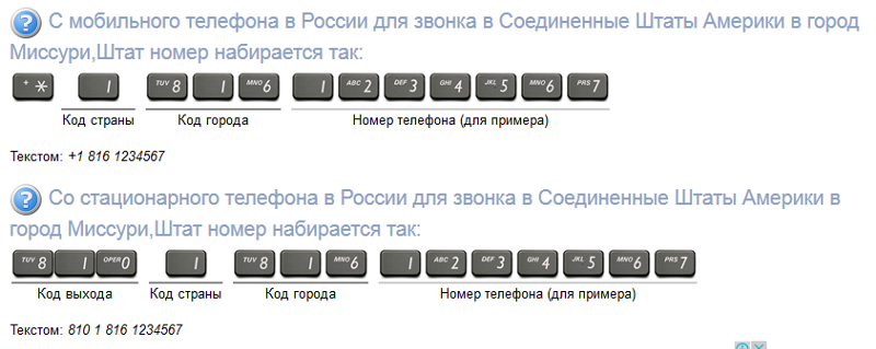 +1 {код страны} ХХХ {код штата или города} ХХХХ-ХХ-ХХ {номер абонента}