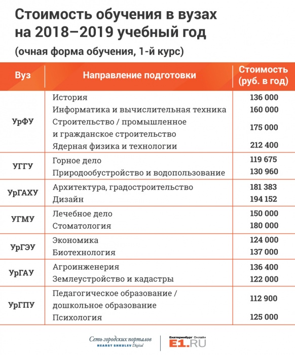 Стоимость обучения в государственных университетах