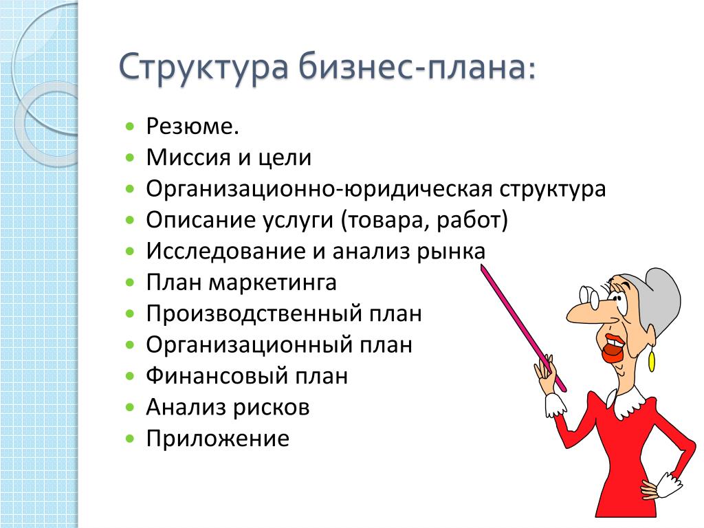 В бизнес-плане обязательно нужно освятить следующие темы: